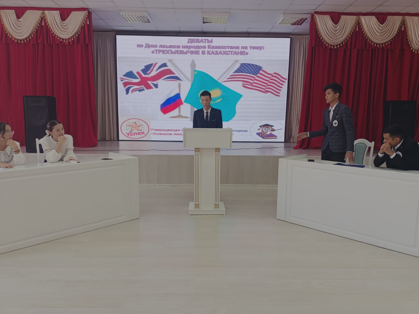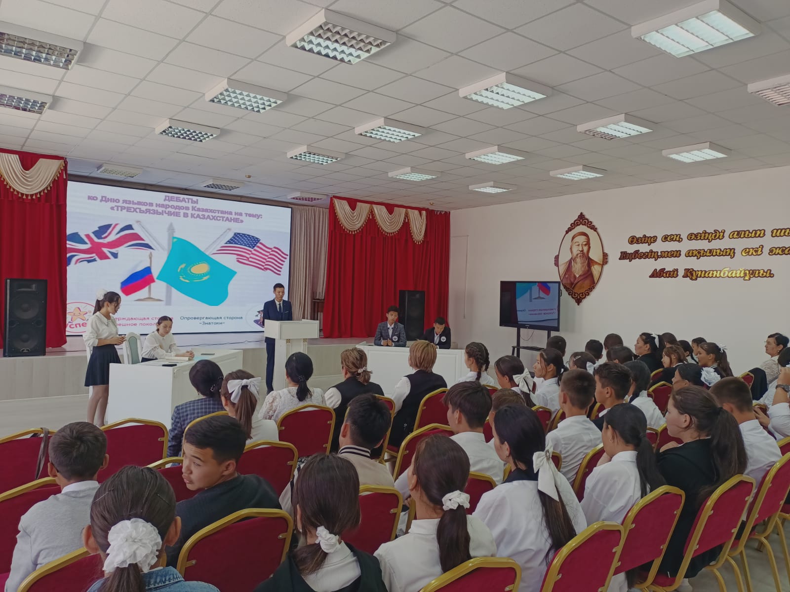 С этой целью учителя кафедры "Русский язык и литература" в средней школе №261 имени Серали Лапина организовали дебаты среди учащихся 10-х классов на тему: "Трехъязычие в Казахстане".